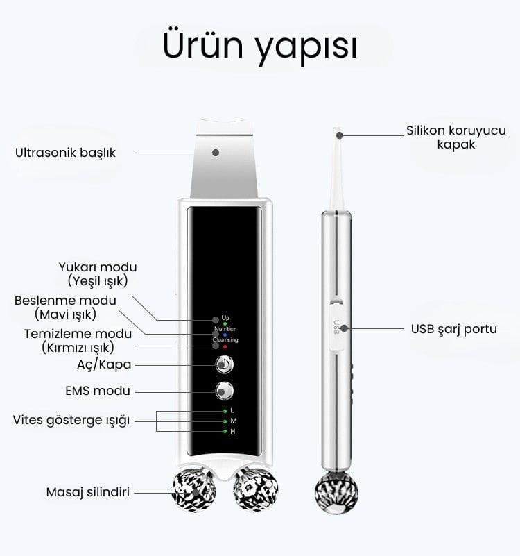 Ultra Scrubber Pro’nun sunduğu ultrasonik cilt temizleyici ve EMS mikro akım teknolojilerinin gücüyle, evinizde profesyonel bir spa deneyimine adım atın. Derinlemesine gözenek arındırma, lifting etkisi ve nano iyon terapisi sayesinde hem pürüzsüz hem de sıkılaşmış bir cilde kavuşacaksınız. USB şarj edilebilir, taşınabilir ve tek tuşla kullanıma hazır bu cihazı hemen sepetinize ekleyin; hızlı kargo, 2 yıl garanti ve memnuniyetiniz odaklı müşteri desteğimizle güzellik rutininizi yepyeni bir boyuta taşıyın!