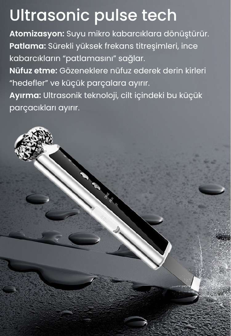 - Supersonik Ultrasonik Titreşim: Saniyede 1,65 milyon titreşim frekansına sahip nanoteknoloji destekli süpersonik dalga sistemi, 3–7 cm derinliğe inerek gözenek içindeki yağ ve kirliliği çözer. Moleküller arasındaki sürtünme ısınmayı tetikler, mikro dolaşımı hızlandırır ve cilt metabolizmasını canlandırır.