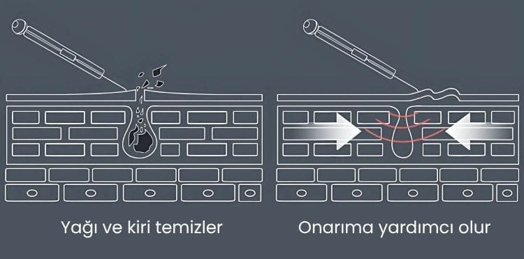 Ultra Scrubber Pro’nun kürek başlıklı ultrasonik aparatı, siyah nokta, sivilce ve sebum tıkanıklıklarını nazikçe sökerken cilt yüzeyini de pürüzsüzleştirir. Geleneksel soyma yöntemlerinden farklı olarak mikro düzeyde titreşimle çalıştığı için cildi tahriş etmez, hassas cilt tiplerinde bile güvenle kullanılabilir. Ayrıca, kan dolaşımını artırarak hücresel oksijen akışını hızlandırır; bu sayede cilt tonu eşitlenir, koyu lekelerde azalma gözlenir ve doğal ışıltı geri kazanılır.